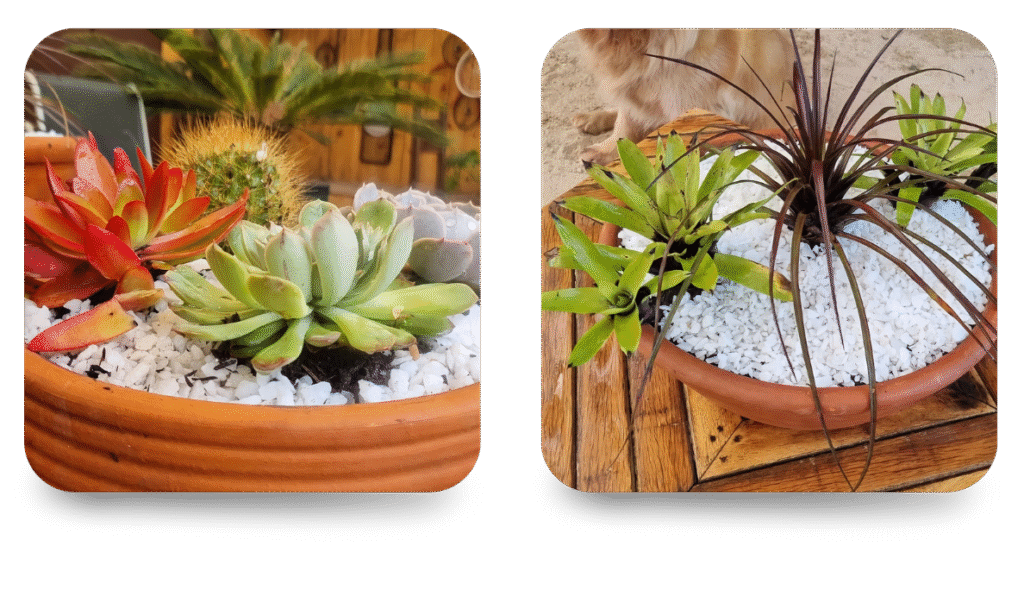 Além de cuidar do quintal, o Momô cria vasos artesanais, feitos à mão com o mesmo carinho que ele dedica à natureza.